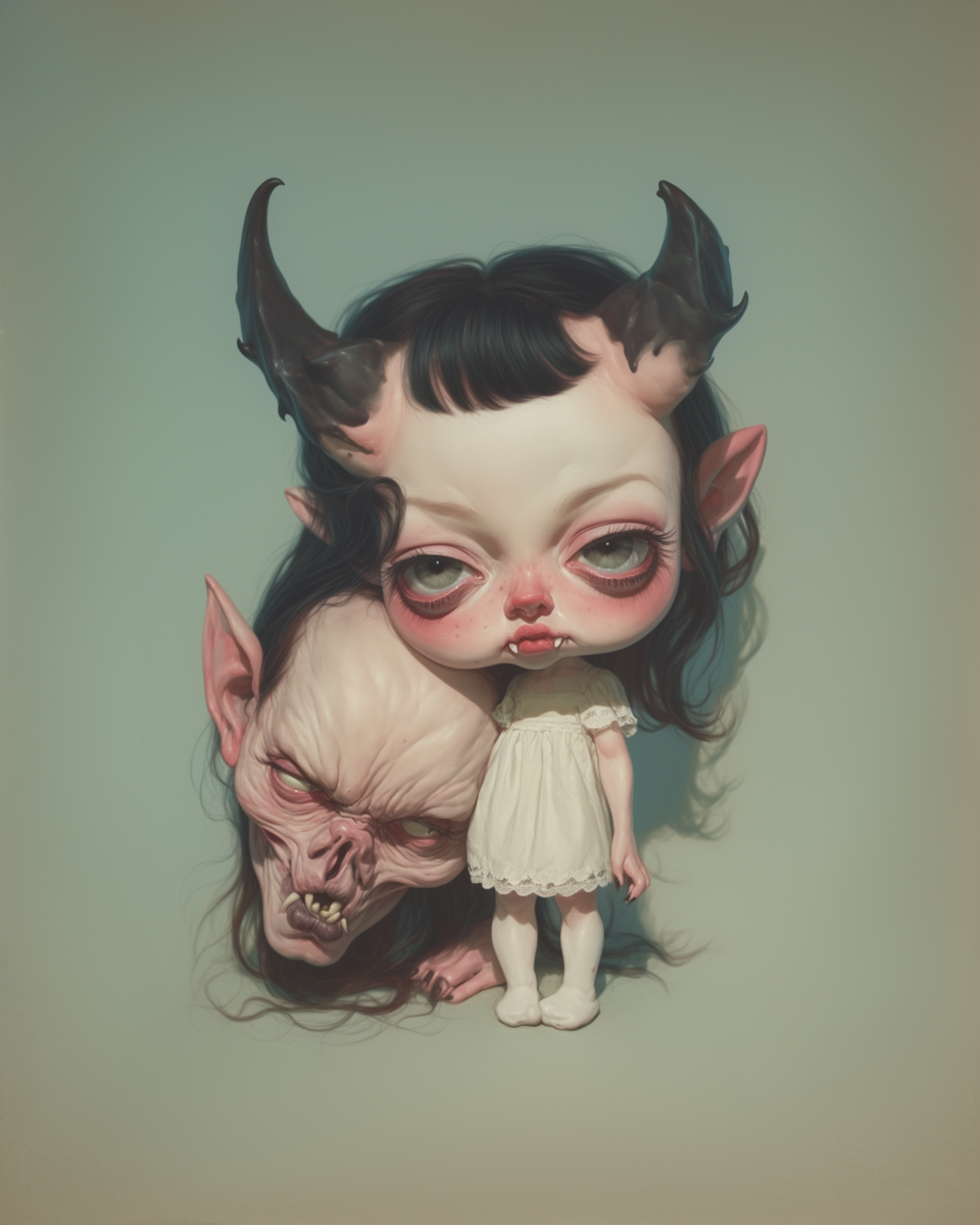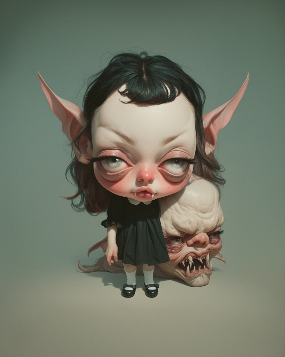 There’s a reason children grow teeth in the dark. When the world fails to protect them, they learn to stand on their own—quietly, fiercely, and long before they should have to. “Small But Mighty” lives in that truth. These figures carry the contradictions of childhood: soft bodies paired with monstrous guardians, fragile frames wrapped around terrifying strength. They are tiny only in size, not in spirit. Their power comes from surviving what they never should’ve faced in the first place.