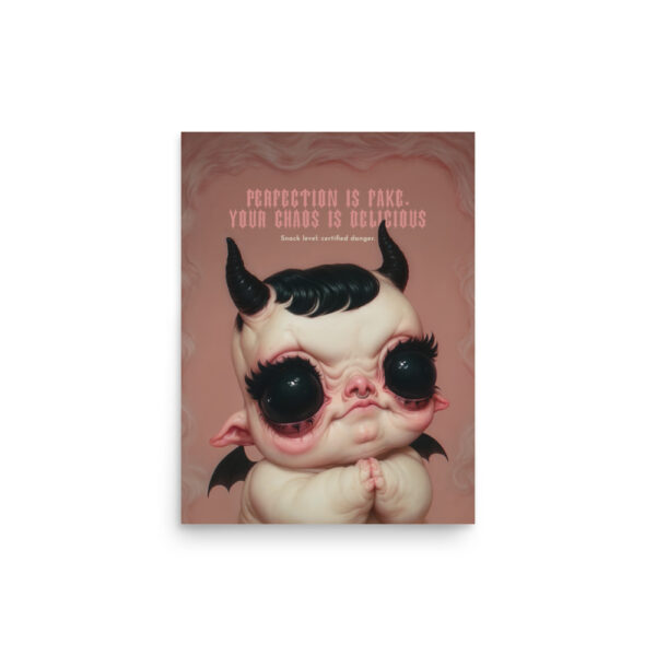This pint-sized menace isn’t here to behave—they’re here to bless your wall with unapologetic weirdness and maximum snack energy. With glossy demon eyes, a pout for the ages, and a level of smug usually reserved for ancient deities, Certified Danger art print is a reminder that being a little too much is actually just right.