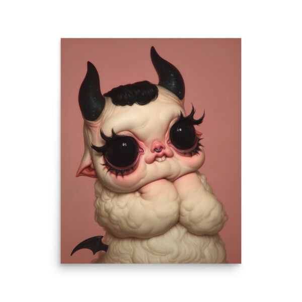 Sweet as sin and soft as a marshmallow meltdown—Too Cute to Be Evil features a wide-eyed baby beast with bat wings, bold lashes, and pure menace tucked under all that fluff. This mischievous little gremlin may look cuddly, but don’t be fooled—they’re judging you (adorably).